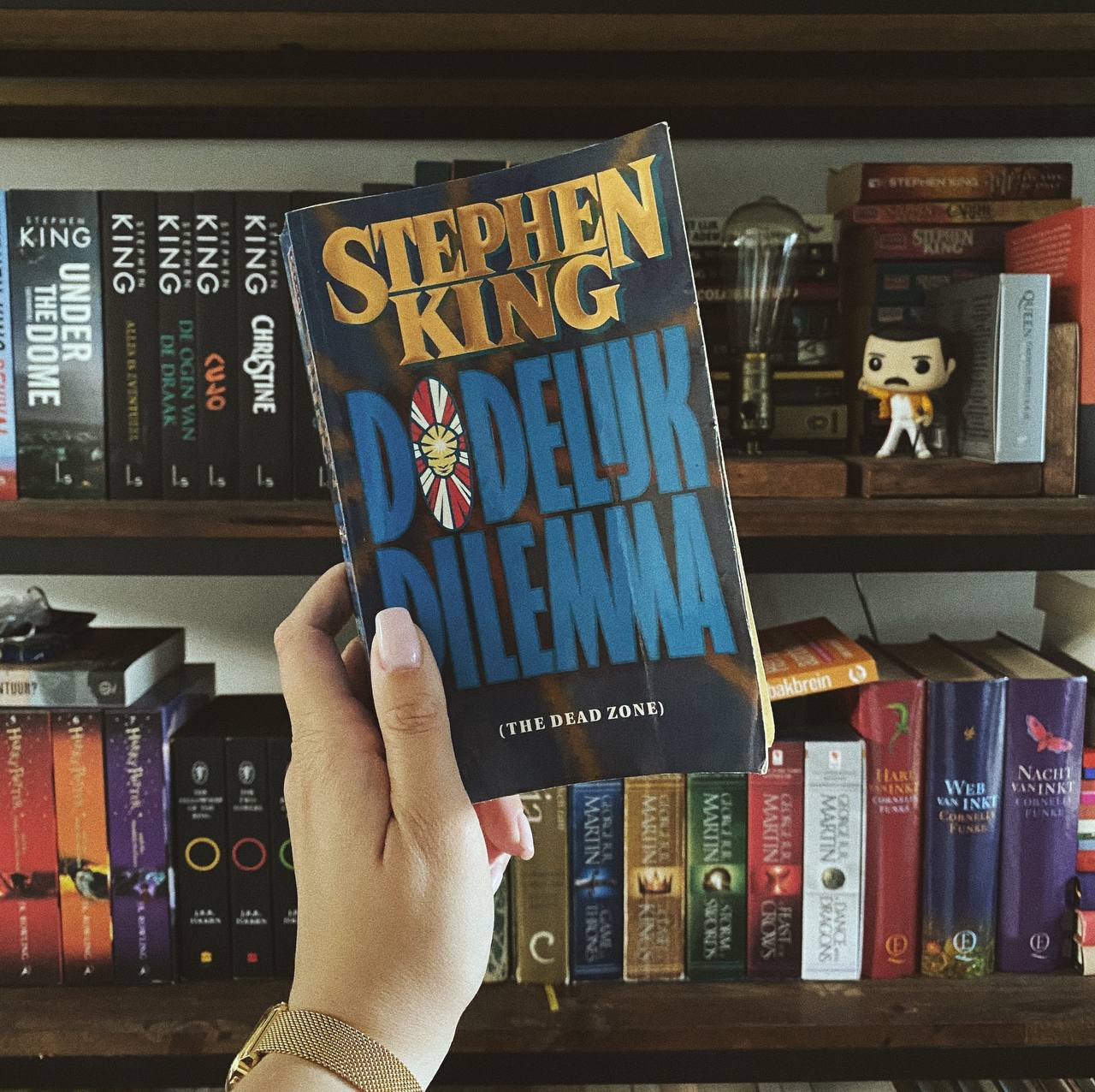 Wat mij dan wel weer trok was een gedeelte dat ging over tijdreizen. Dat is namelijk indirect wat Johnny doet: hij ziet de toekomst en kan vervolgens een keuze maken of hij daarop acteert. Het dodelijke dilemma… Dit zien we ook terug in het recentere King-boek 11.22.63, waarin Jake Epping terug in de tijd reist en zo de aanslag op JFK wil voorkomen. 11.22.63 is (naar mijn mening) een beter uitgewerkte versie van The Dead Zone. Ook denk ik dat het waarschijnlijk deels aan de ietwat verouderde paperbackversie van Dodelijk dilemma lag die ik las, dat ik moeilijk door de laatste 75% van het boek heen kwam. Een klassieke King, maar helaas geen nieuwe favoriet.